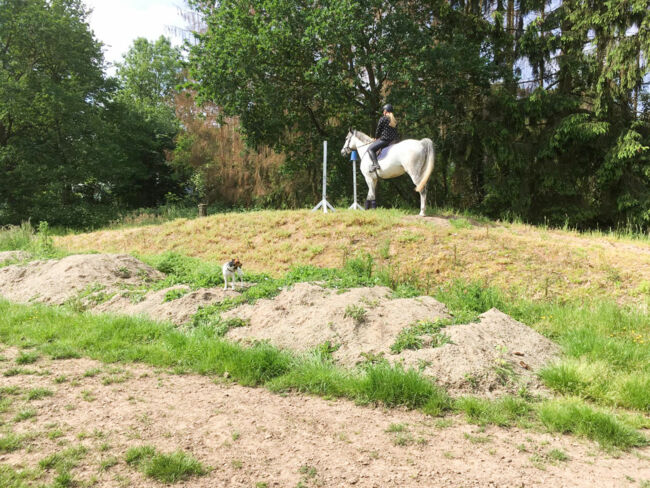Die Reitanlage bietet trotz ihrer Großzügigkeit, kurze Laufwege für Pferd und Reiter. In unmittelbarer Nähe zum Königsforst haben Pferd und Reiter die Möglichkeit ideal zu entspannen. Für die vielseitige Ausbildung steht neben der Reithalle und dem Außenviereck, jeweils mit den Standartmaßen von 20 mal 40 Metern, eine Longierhalle, ein Außenlongierzirkel, eine Wellenbahn, ein Laufband, eine Reitwiese mit Naturhindernissen sowie ein eigenes Feldwegeausreitnetz zur Verfügung.